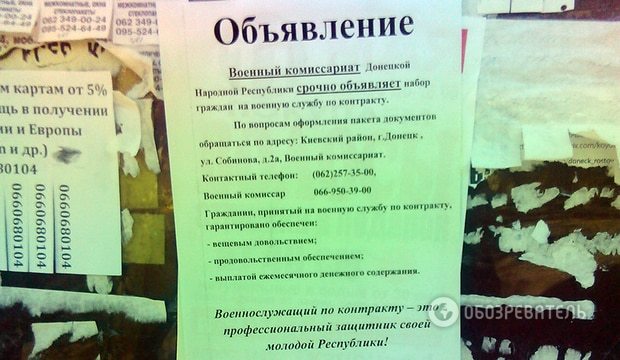 До сих пор периодически обновляются объявления о "добровольной мобилизации". Если говорить в целом, то повестки здесь не вручают, с улиц в "ополчение" не тащат. "Война – дело добровольное". (Опять же, не без исключений, когда в ряды "защитников" отправляют за какие-либо "провинности").