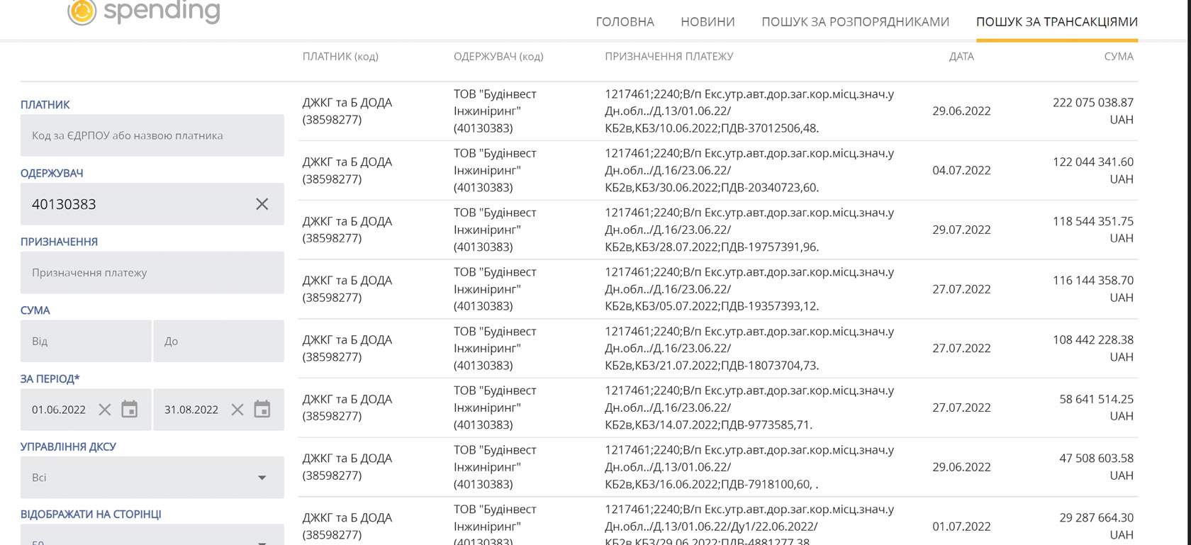 За время полномасштабной агрессии на подрядах в одной только Днепропетровской области на "Стройинвест Инжиниринг" поступило перечислений больше, чем на такие известные путестроители как "Автомагистраль-Юг" и "Онур конструкцион интернешнл" по всей Украине.