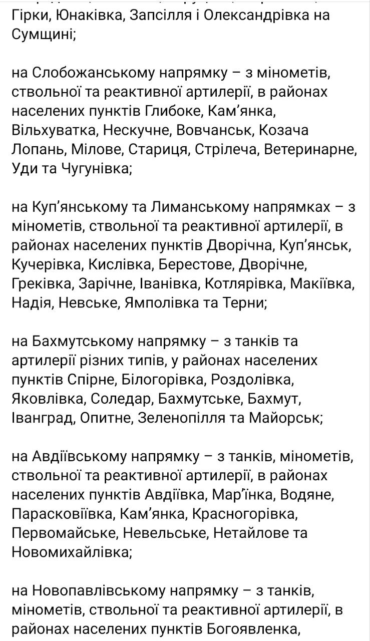 За сутки отражены атаки в районах населенных пунктов Макеевка, Невское и Белогоровка Луганской области, Верхнекаменское, Спорное, Бахмут, Майорск, Первомайское, Новомихайловка, Водяное, Павловка и Пречистовка Донецкой области.