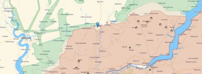 Также, по данным карты, в серой зоне теперь находятся город Снигиревка (Николаевская область) и село Правдино (Херсонская область).