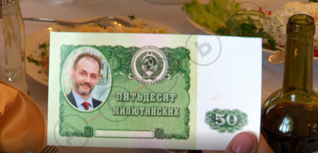 Праздничные купюры с Милютиным. Источник: Центр «Досье»