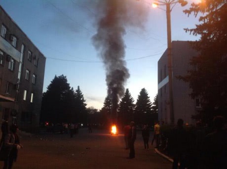 По состоянию на сейчас под зданием горисполкома развели огонь, несколько десятков гражданских.