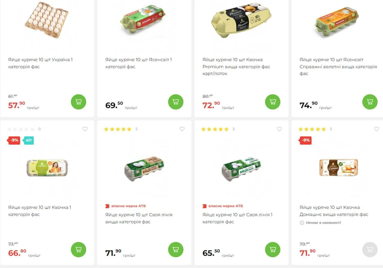 В АТБ яйца можно купить по цене 57,9–74,9 грн/десяток.