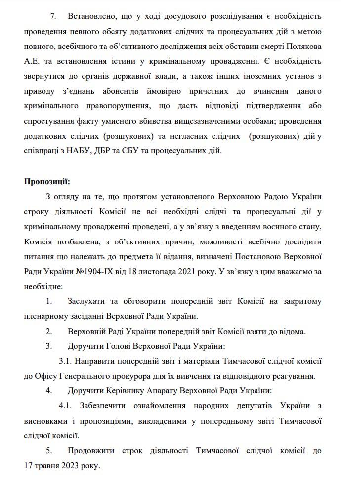 Комиссия хочет продлить работу по изучению обстоятельств смерти (убийства) Полякова еще на полгода. Вместе с тем ВСК считает, что орган досудебного расследования "предвзято избрал в качестве приоритетной версию о склонности Полякова к употреблению наркотиков", а версия об умышленном отравлении нардепа не отрабатывалась.