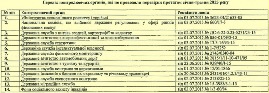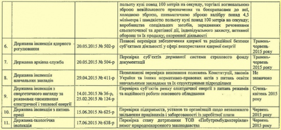 По две проверки провели Госслужба чрезвычайных ситуаций, Нацкомиссия по регулированию в сферах энергетики и коммунальных услуг, Нацкомиссия в сферах связи и информатизации, а также Госслужба спецсвязи и защиты информации. Остальные из 11 ведомств ограничились одной проверкой.