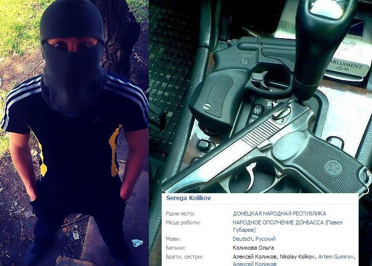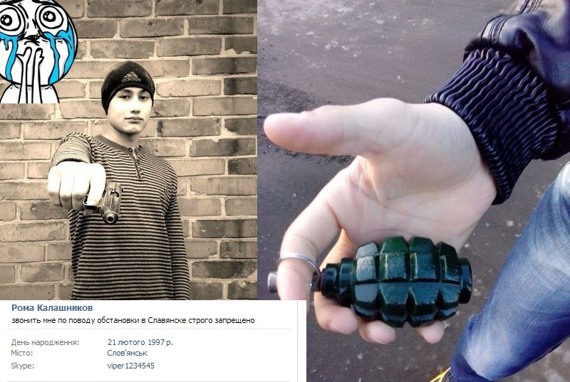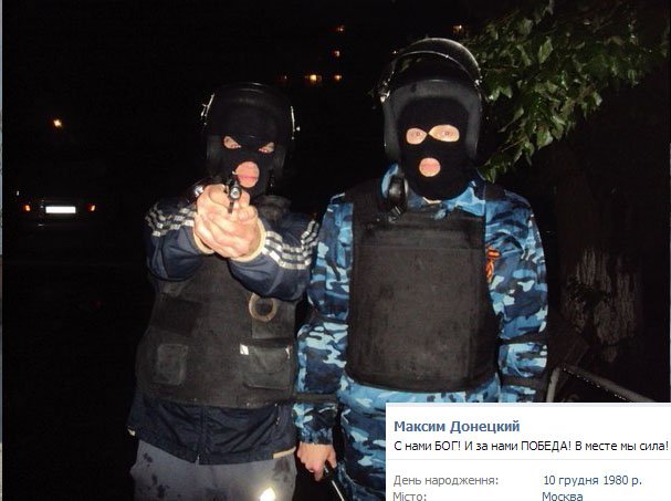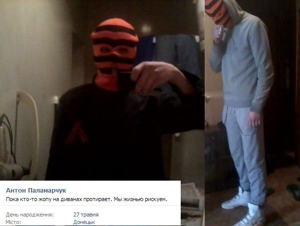 Подивіться, скажімо, на мудака з російським триколором. Це Євген Єрмаков зі славетного міста Донецька. Нічого дивного, правда? Але Жєня правоохоронець. На фото у шоломі – теж він.