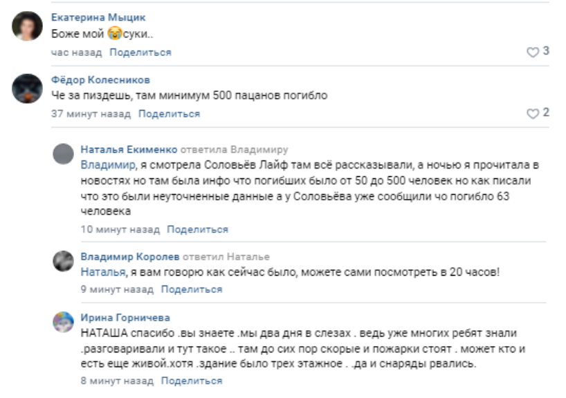 Особое возмущение макеевчан вызвало сообщение минобороны россии о 63 погибших. «Допишите к 63 нулям, чтобы это было правдой», пишут в соцсетях.