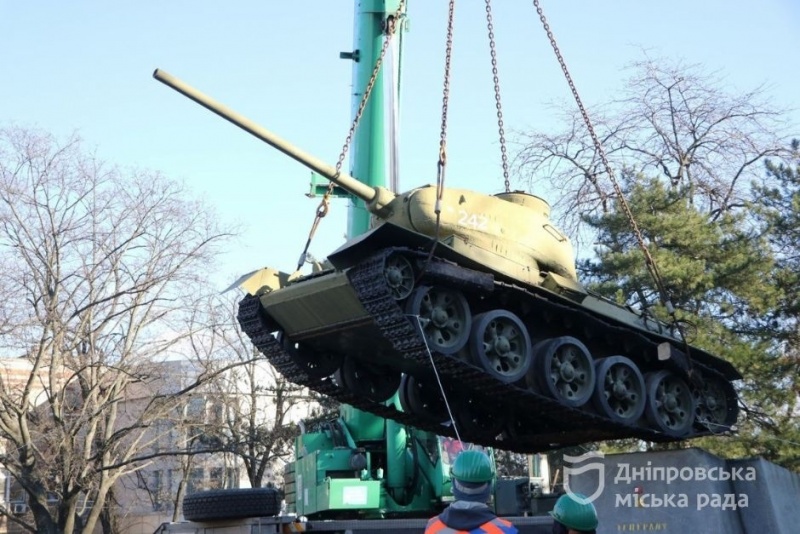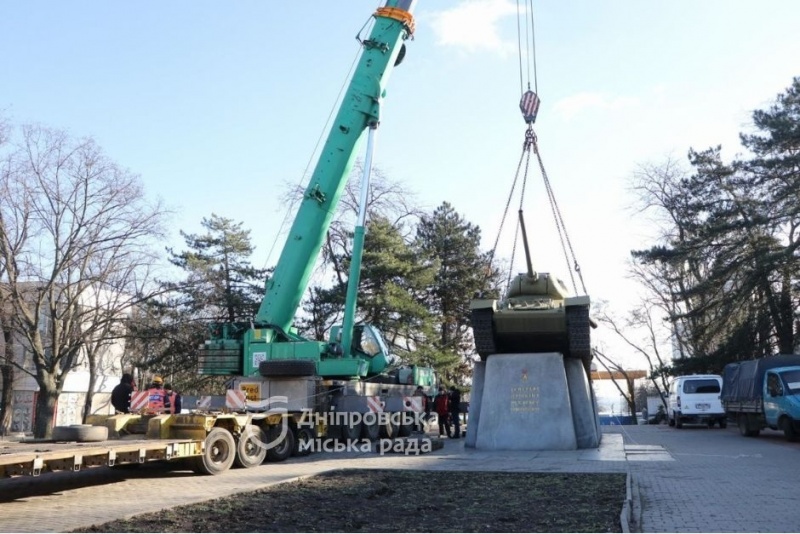 В среду, 4 января, с помощью спецтехники коммунальщики демонтировали памятник генерал-лейтенанту Ефиму Пушкину. В Днепре этот памятник больше известен как "Танк". Он был снят с постамента и вывезен на территорию одного из коммунальных предприятий.