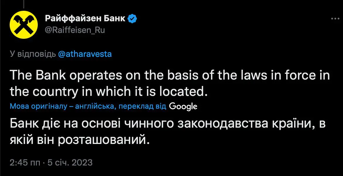 Австрийский Райффайзен Банк, также работающий на территории Украины, признает террористические ЛДНР.