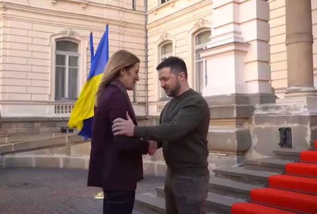 В Украину 4 марта прибыла президент Европейского парламента Роберта Метсола. Во Львове ее встречал президент Украины Владимир Зеленский.
