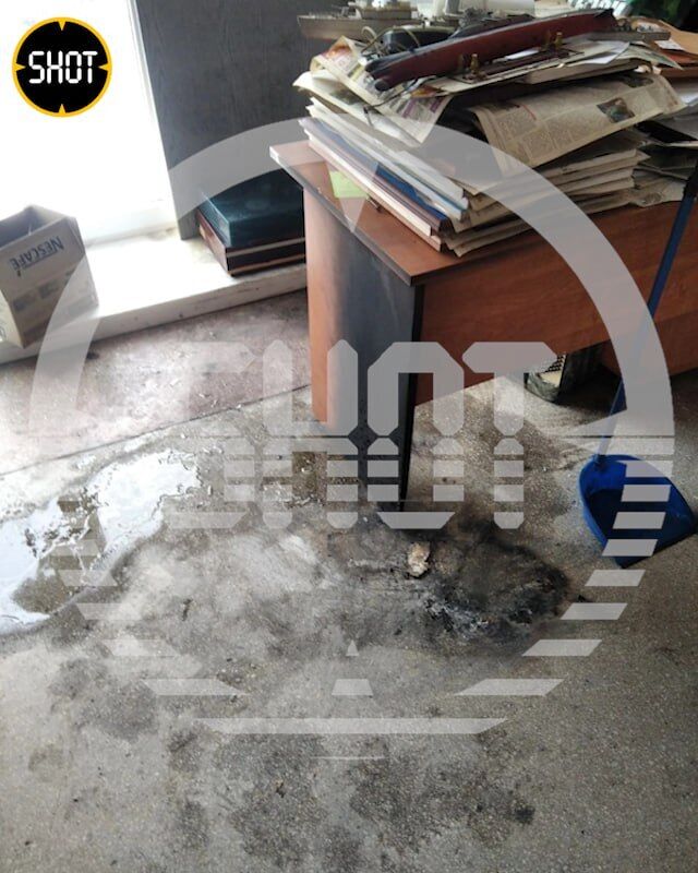Об инциденте сообщил один из пропагандистских Telegram-каналов. Судя по фотографиям, опубликованным в сети, поврежден пол здания, стол, окно, но сотрудникам частного охранного предприятия (ЧОП) удалось потушить огонь.