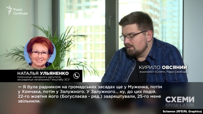 – Я была советником на общественных началах еще у Муженко, потом у Хомчака, потом у Залужного. У Залужного... ко всем этим событиям. Октябрь 2022-го. 22 октября его (Богуслаева – ред.) арестовали, а 25 октября меня уволили.