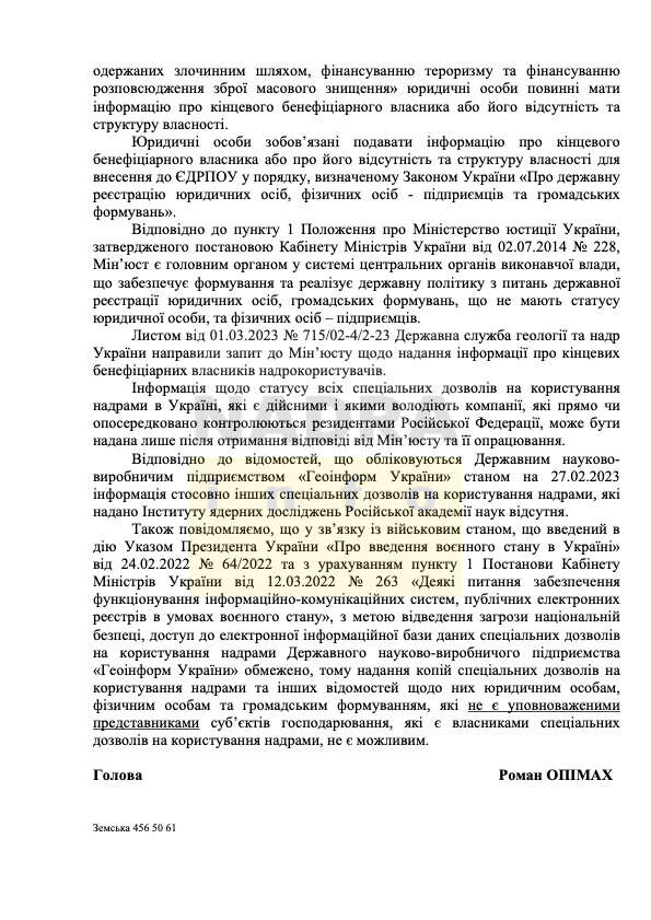 «После вступления решения Донецкого окружного административного суда в законную силу, Государственной службой геологии и недр Украины будут приняты меры по аннулированию Разрешения в установленном законодательством порядке», – заявил Председатель Госгеонадр Роман Опимах»: