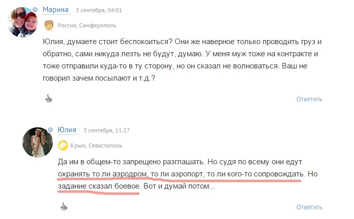 На днях нам прислали ссылку на один женский форум, на котором одна девушка жаловалась на то, что её мужа отправляют надолго (на срок от 3-х до 8-и месяцев) в Сирию и она переживает за него.