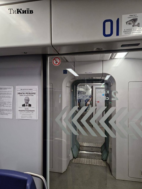 "Укрзализныця" решила помочь Международному уголовному суду Гааги, выдавшему ордер на арест президента РФ Владимира Путина, и расклеила объявление о его розыске в электричках.