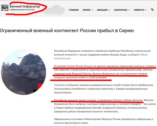 Хотя на официальном уровне Москва все еще отрицает участие подразделений своих ВС в боевых действиях на стороне Асада, отдельные российские СМИ (не без ведома ФСБ) открыто пишут об ограниченном военном контингенте из РФ в Сирии.