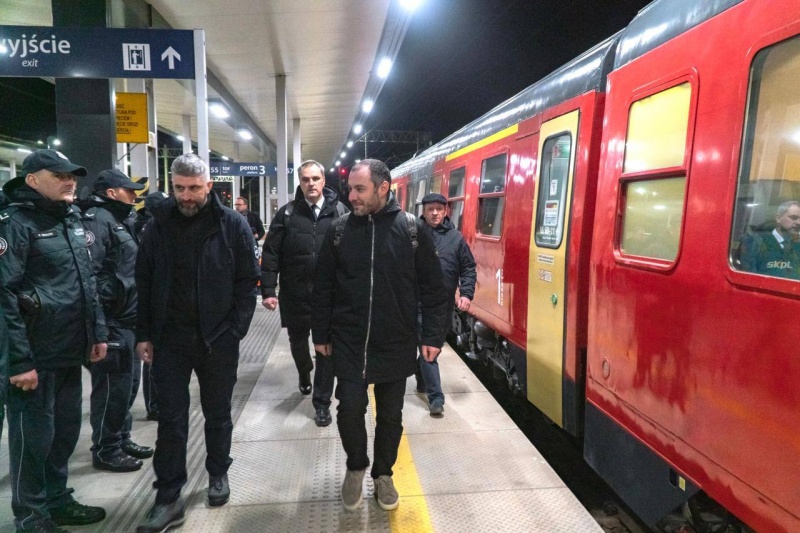 Первым поездом проехали железнодорожники вместе с министром инфраструктуры Польши Анджеем Адамчиком и вице-премьер-министром по восстановлению Украины, министром развития общин, территорий и инфраструктуры Александром Кубраковым.