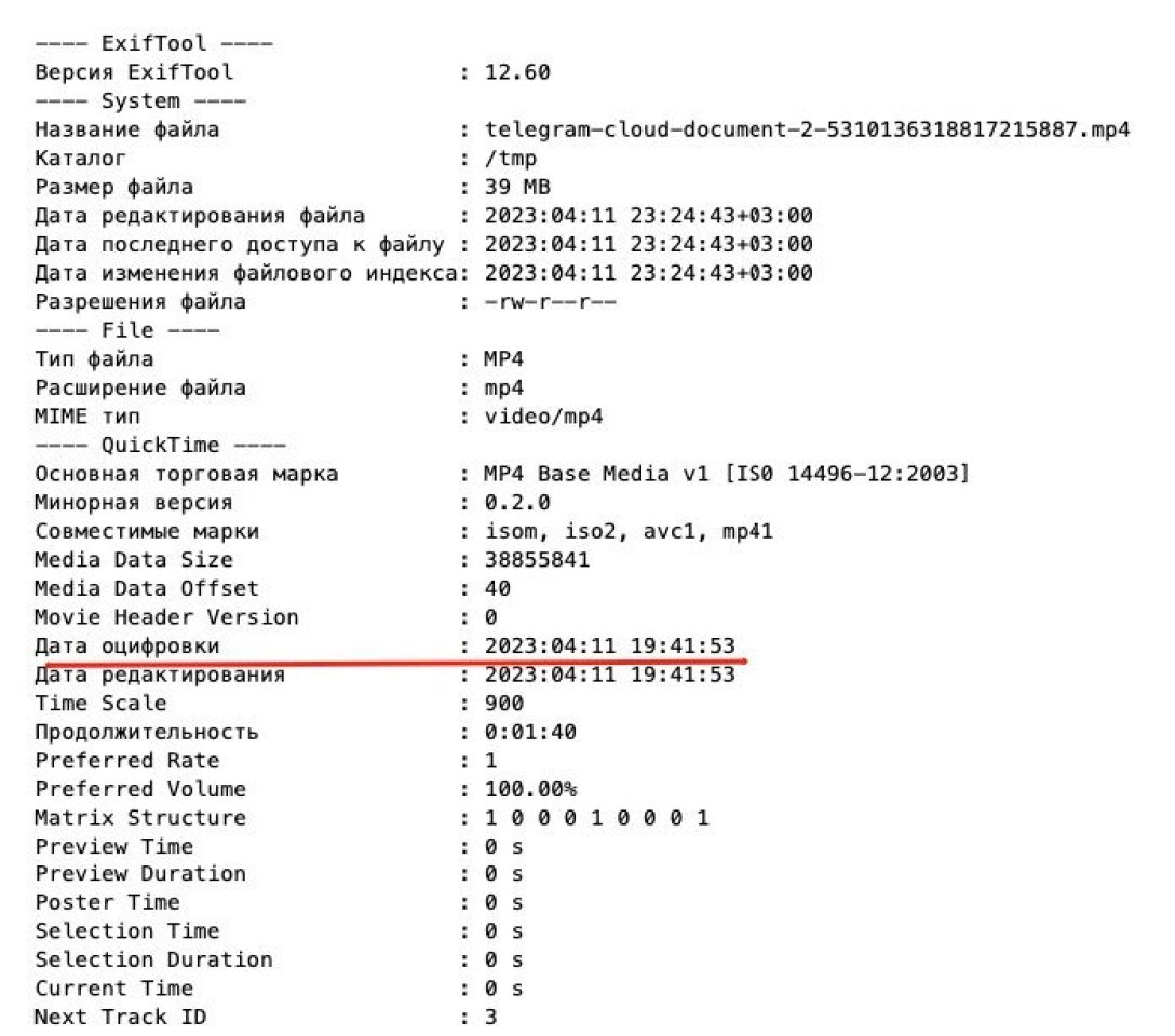 Однако проверка метаданных показала, что файл был загружен в Telegram несколькими часами ранее – в 19:41.