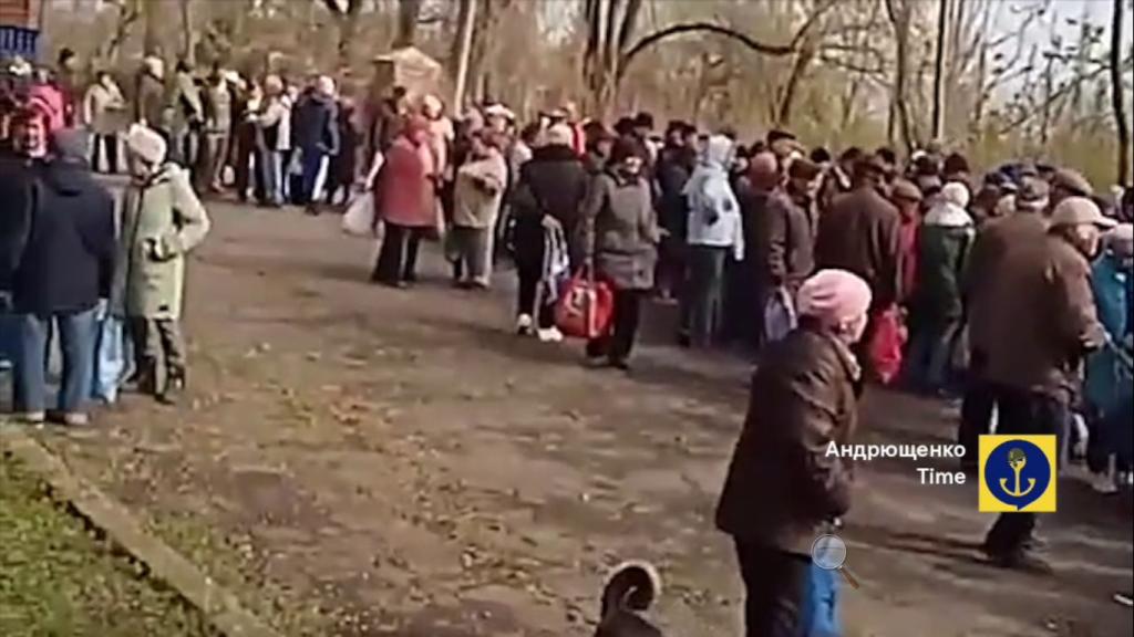 Мариупольская весна во всей красоте стабильности, комментирует он толпу людей в очереди за едой.
