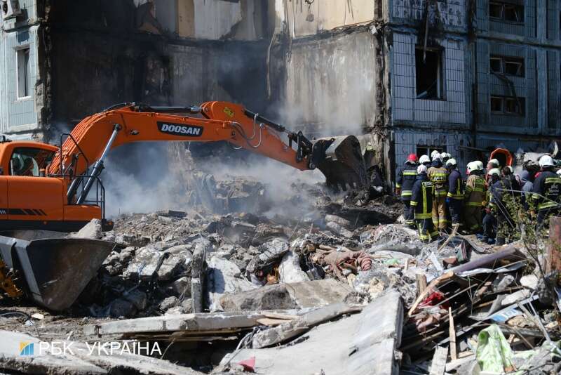 Ракетный удар по многоэтажке в Киеве: фоторепортаж с места трагедии