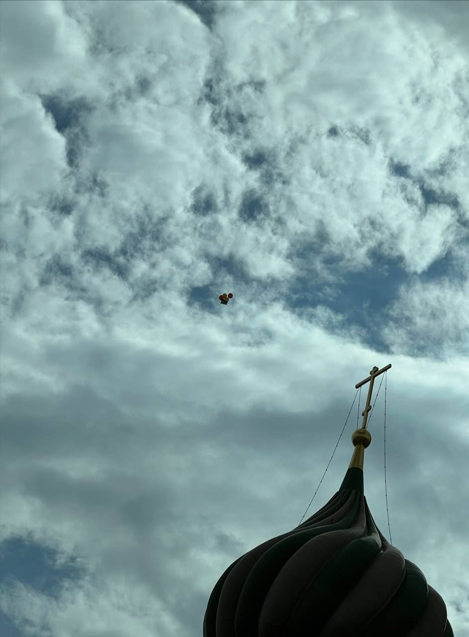 В небе над Красной площадью в Москве запустили украинский флаг на воздушных шарах.