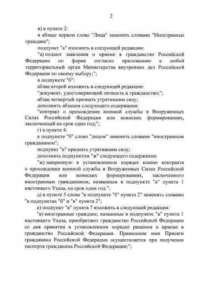 Российский диктатор Владимир Путин подписал указ, упростивший получение гражданства иностранцам за прохождение военной службы в ВС РФ.