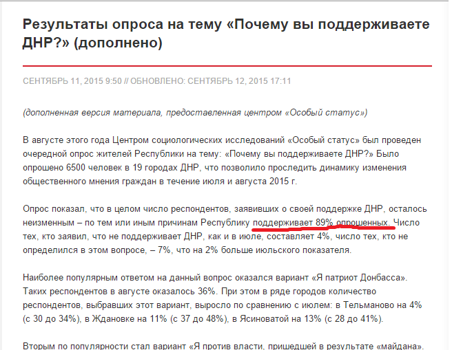 Теперь на сайте говорится, что ДНР поддерживают 89% жителей Донецкой области, при том, что еще вчера было написано, что 29%.