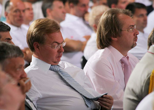 | Президент АН Украины Борис Патон, глава Укрсоцбанка Борис Тимонькин, президент Концерна "Стирол" Николай Янковский на открытии нового завода Пинчука |