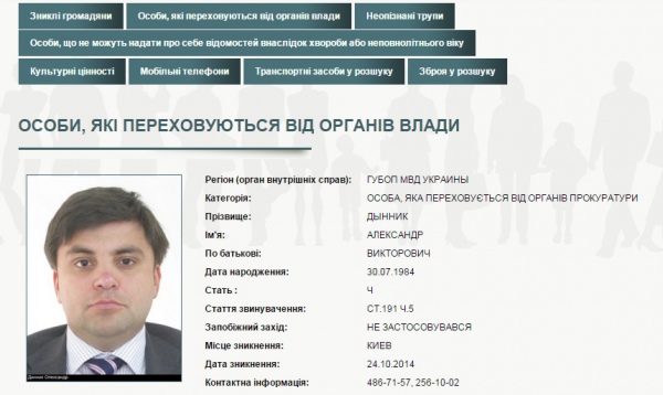 | Объявление о розыске Дынника на сайте МВД, которое сейчас исчезло |