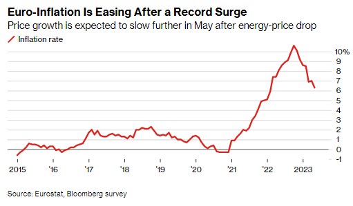 Для домохозяйств ценовые преимущества очевидны. Инфляция в еврозоне, вероятно, замедлилась в мае до 6,3%, что является самым низким показателем перед вторжением России в Украину. В отчете, который должен быть опубликован во вторник, экономисты Nomura говорят, что они ожидают увидеть "низшие оптовые цены на энергоносители, которые придут потребителям во всей зоне евро".