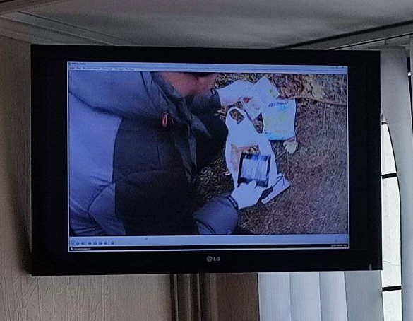 Встревоженный вдруг Фоменко сначала отрицает, что творит что-то незаконное, обвиняет правоохранителей, что это они все подстроили. Но потом показывает место, где установил трекер, прикрутил четырьмя шурупами и замаскировал растительностью. И в то же время Фоменко говорит, что не хочет сотрудничать с правоохранителями и запрещает снимать себя на камеру, поскольку он не политик и не публичная личность. Отказывается называть пароли до двух изъятых у него мобильных.