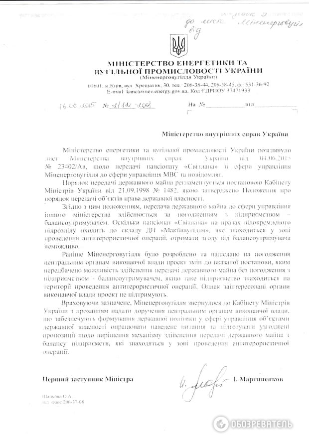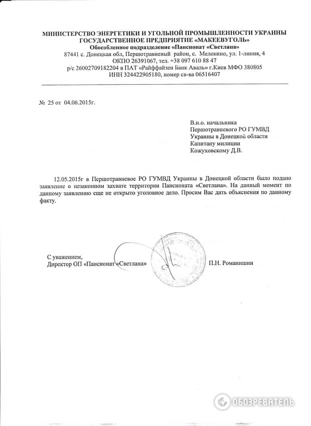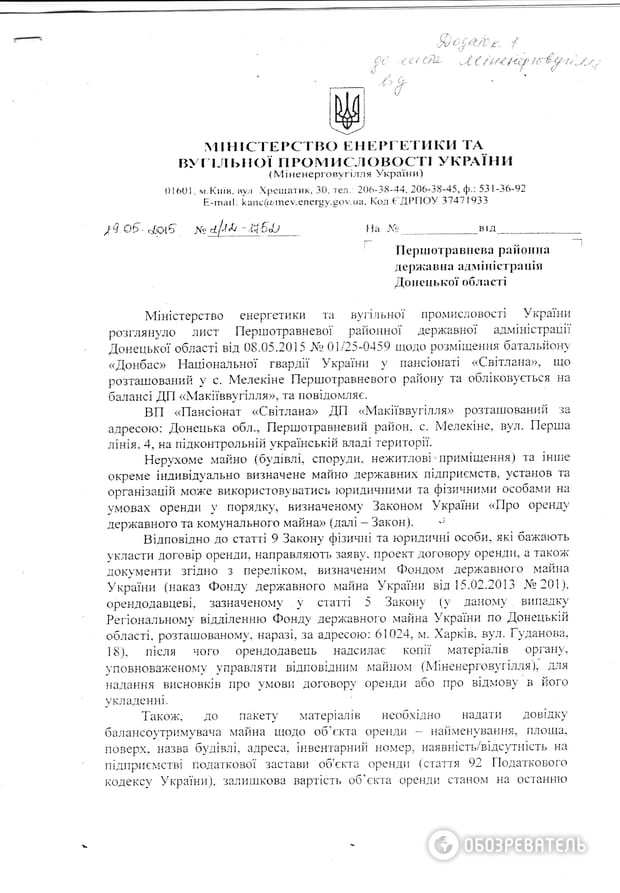 Пытаясь понять, кто и какой именно приказ давал бойцам "Донбасса", "Обозреватель" обратился с запросами в МВД, Нацгвардию, к командованию сектора М и к самому батальону "Донбасс". Ведомство Авакова сразу же "перевело стрелки" на Нацгвардию. Оттуда же нам под видом ответов на сформулированные в запросе вопросы - справку о долгой и пока безрезультативной переписке между МВД и Минэнергетики по поводу передачи пансионата на баланс МВД.