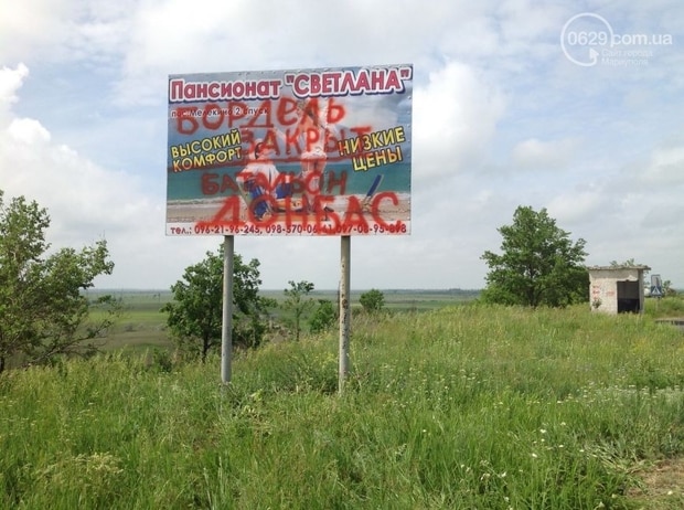 Фото сайта 0629.com.ua: знаменитый билборд пансионата "Светлана", "тюннингованый" бойцами батальона "Донбасс"