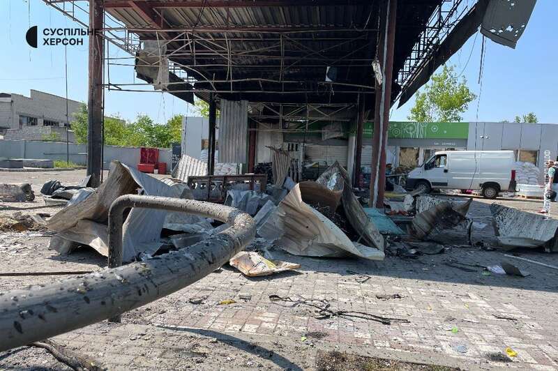 Также "Суспильне" публикует фото из Херсона после ночного обстрела и пожаров. Так сейчас выглядит сгоревшая автозаправочная станция.