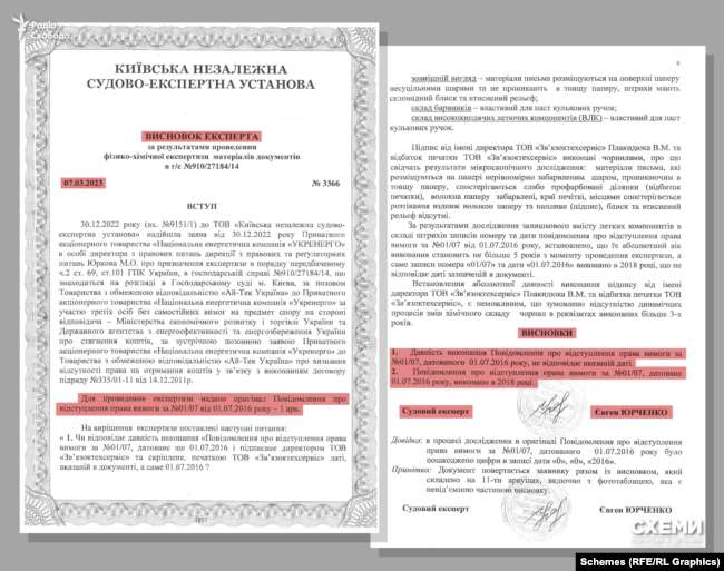Госпредприятие обратилось к экспертам Киевского независимого судебно-экспертного учреждения с просьбой исследовать реальную дату этого сообщения (ведь оригинала самого договора у госкомпании нет). Эксперты выяснили, что там поддельная дата.