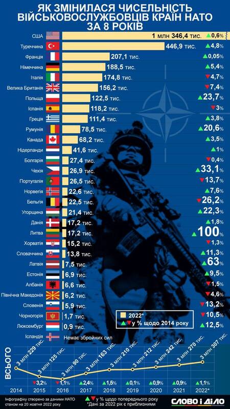 Общая численность ЧВК в Украине составляла 78 тысяч бойцов. Например, большие по численности армии в Европе лишь у немногих государств, в частности, в Греции, Испании, Польше, Великобритании, Франции, Италии и Германии.
