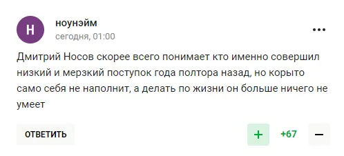 "Дмитрий Носов скорее всего понимает кто именно совершил низкий и мерзкий поступок года полтора назад, но корыто само себя не наполнит, а делать по жизни он больше ничего не умеет", – пишут юзеры.