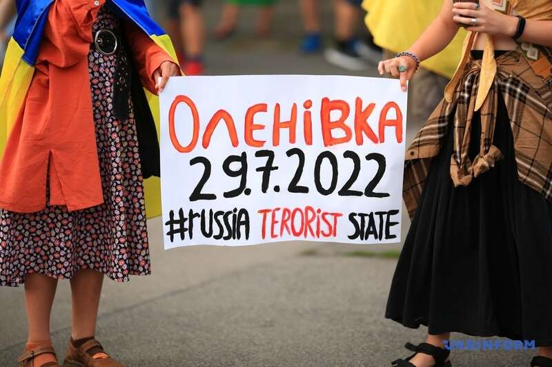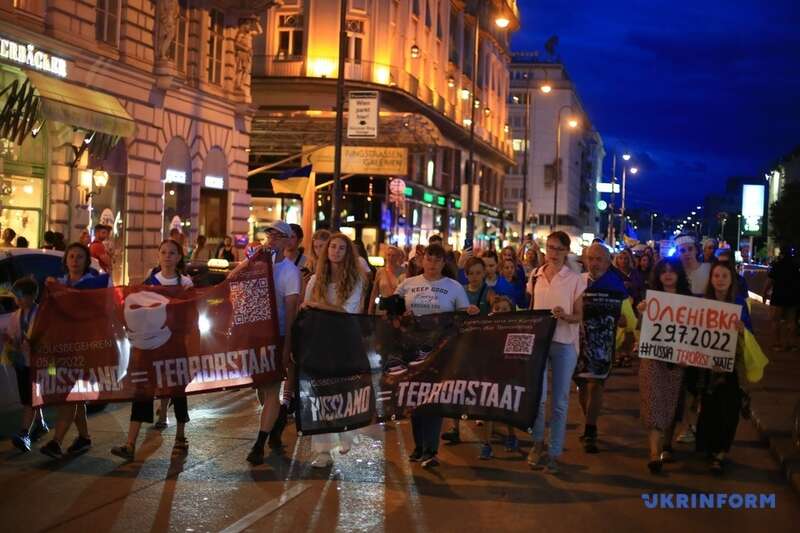 Украинские активисты провели в Вене акцию памяти погибших военнопленных в результате теракта в Оленовке и с целью напоминания о террористической сущности России.