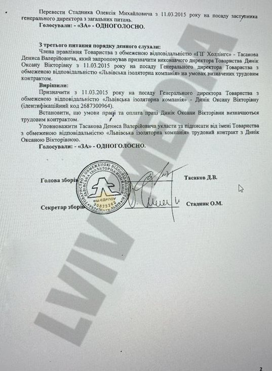Которую на должность директора ООО «Львовская изоляторная компания» назначил в 2015 году Денис Тасаков, контролировавший тогда компанию: