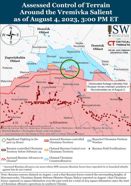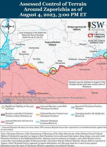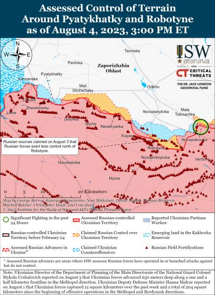 Российские источники утверждали, что украинские войска вели наступательные действия вдоль линии Купянск-Сватово, 4 августа.