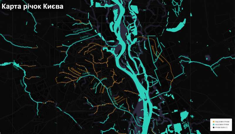 В Киеве насчитывается более трех десятков малых рек. Они были важной частью жизни предков – на берегах строили дома, ставили мельницы, насыпали плотины, возводили защиту от захватчиков. Сейчас роль этих рек значительно меньше, отмечает издание "Европейская правда". Абсолютное большинство из них частично или полностью скрыты в подземные коллекторы и протекает в малолюдных промышленных зонах и частном секторе. Поверх загнанных в бетон рек построены автомобильные дороги.