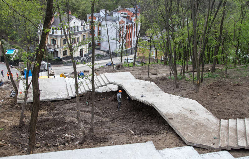 3 апреля и 18 июня 2018 между КП "Инженерный центр" и ООО "Стройсервис 2" было заключено два договора на реконструкцию лестницы от переулка Десятинного до улицы Гончарной и благоустройства прилегающей территории в пределах пешеходной аллеи Андреевского спуска, а также на осуществление дополнительных работ этому же проекту. Согласно этим соглашениям, общая стоимость работ должна составить 51 млн гривен, а завершены они были до 31 декабря того же года. В конце концов ООО "Будсервис" получило большинство предусмотренных договорами средств на сумму чуть менее 51 млн гривен.