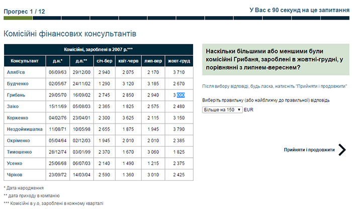 Максимально отведенное время для тестирования составляет 47 минут: 16 минут на прохождения вербального теста, 16 минут – на числовой тест и 15 минут – на логический тест. При решении задач необходимо внимательно прочитать каждый вопрос и варианты ответов. После того, как кандидат определится со своим ответом, он выбирает его и переходит к следующему вопросу. Существует ограничение по времени для обдумывания каждого вопроса. Все кандидаты должны иметь при себе калькулятор, ручку и чистый лист бумаги. Тестирование второго этапа разработано на базе TalentQ. Попробовать свои силы можно зарегистрировавшись на сайте, правда тесты доступны только на английском языке.