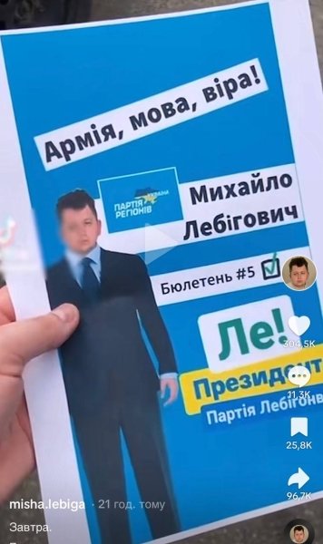 Впрочем, прежде всего стоит отметить, что Михаилу Лебиге сейчас 25 лет, поэтому баллотироваться в президенты он сможет только через 10 лет, по действующему украинскому законодательству. Однако депутатом в Украине можно стать с 21 года.