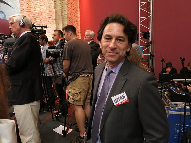 Цього разу в штабі Порошенка можна було побачити не британських акторів, а світського хронікера Катю Осадчу, яка зазирала в очі легендарному журналісту "Коммерсанта" Андрію Колеснікову - автору чисельних книг про Путіна, а також про помаранчеву революцію "Перший український", де Порошенко виступав одним із головних оповідачів про події 2004 року.