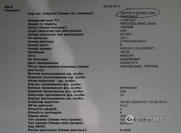 3 июня 2014 года - смена собственника, автомобиль регистрируется на нового хозяина - Николая Андреевича Лесика из Черновцов, новый госномер - СЕ 3059 ВС. В интернете есть информация только об одном человеке с такими данными - бывшем футболисте из Черновцов, обладателе, помимо украинского, еще и молдавского паспорта. И уже через три дня г-н Лесик снимает автомобиль с учета, получив транзитный номер 11 НЕ 7267.