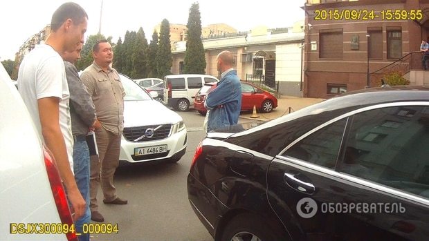 Это - адвокат Титаренко Н.Н. Он вышел из офисного помещения по улице Туровская, 13. Именно в его присутствии другие три человека, в том числе и человек, который находился за рулем "Мерседеса" при выезде со двора офиса ВО "Батькiвщина", забрали все вещи из автомобиля, закрыли его на ключ и оставили место проведения процессуальных действий.