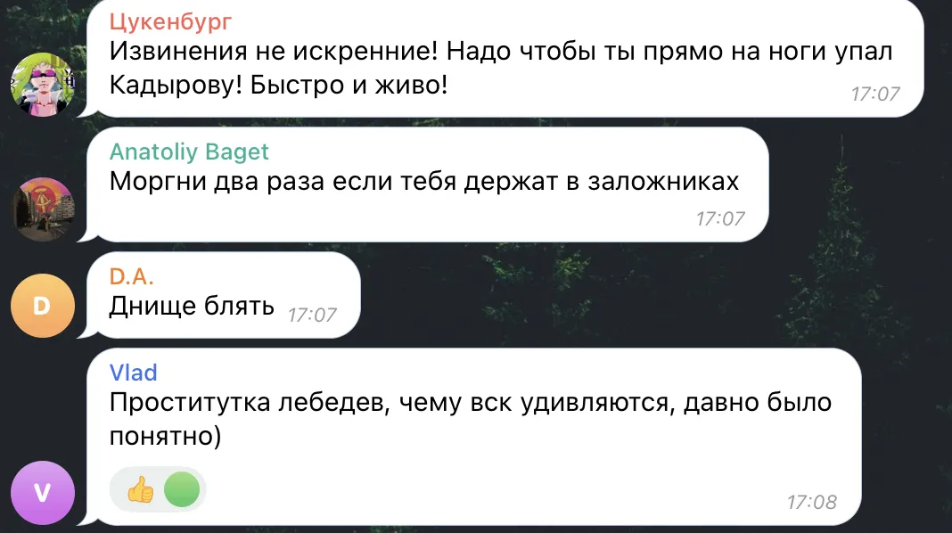 Напомним, что в 2017 году россияне на камеру и в текстовом формате начали просить прощения у Рамзана Кадырова, что впоследствии активно обсуждалось в сети. Лебедев тогда опубликовал на своей странице "открытое письмо горному брату", в котором высмеял голову Чечни, но не называл его по имени, и раскритиковал практику выбивания извинений властями республики.