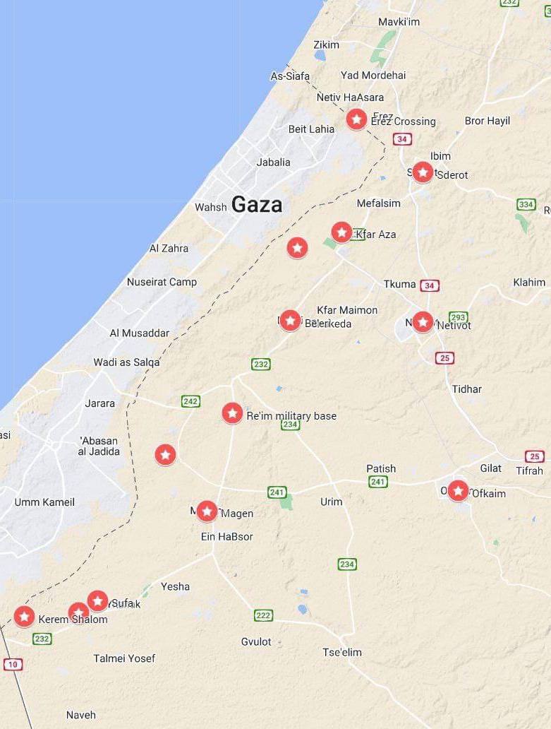 На карте, которую публикуют в Сети, – проникновение боевиков на израильскую территорию.
