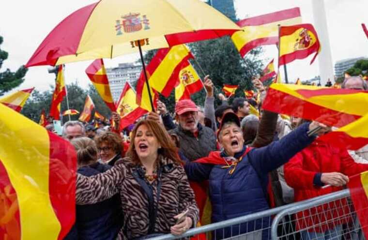 Тысячи человек вышли в воскресенье в Мадриде против планов амнистии каталонских сепаратистов на акцию протеста, организованную ультраправой партией Vox.